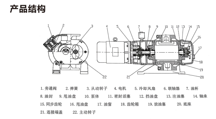 1、轉子與泵腔、轉子與轉子之間無摩擦,不需潤滑油,故泵腔內無油,避免了由對真空系統的污染。
