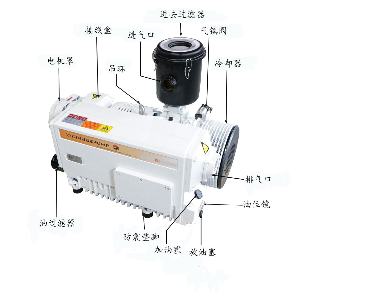 標(biāo)準(zhǔn)電機(jī)直聯(lián)驅(qū)動(dòng),可定制特殊要求電機(jī)結(jié)構(gòu)緊湊輕巧,尤其適合設(shè)備配套吸排氣口采用標(biāo)準(zhǔn)螺紋,連接方便配備高效油氣分離裝置,排氣潔凈